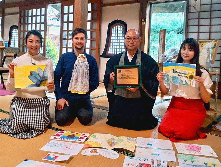 ロシアのウクライナ侵攻によって、子どもや民間人を含め多くの犠牲者が出ており、また数百万人が国境を越え難民となり、苦しい生活を余儀なくされています。この問題に対してお寺として何か支援できないかと思い支援御朱印の授与を13教区に提案いたしました。思いは同じであったようで、多くのお寺さんが協力を申し出てくれました。また、親交のあったアンドリュー夫妻も、ポーランドへ避難した方への支援窓口として、活動してくれることとなりました。お陰様でこの難民支援活動が新聞やテレビ等にも取り上げていただき、約3か月間の活動で250万円以上の支援金が集まりました。皆様のご協力に感謝いたします。